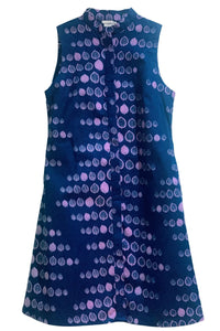 A classic shape, reinvented with a touch of joy from our hand-picked prints. Flared smock dress, sleeveless, two handy pockets and buttons all the way up. Wear alone as a dress or unbuttoned as a gilet over your favourite look.